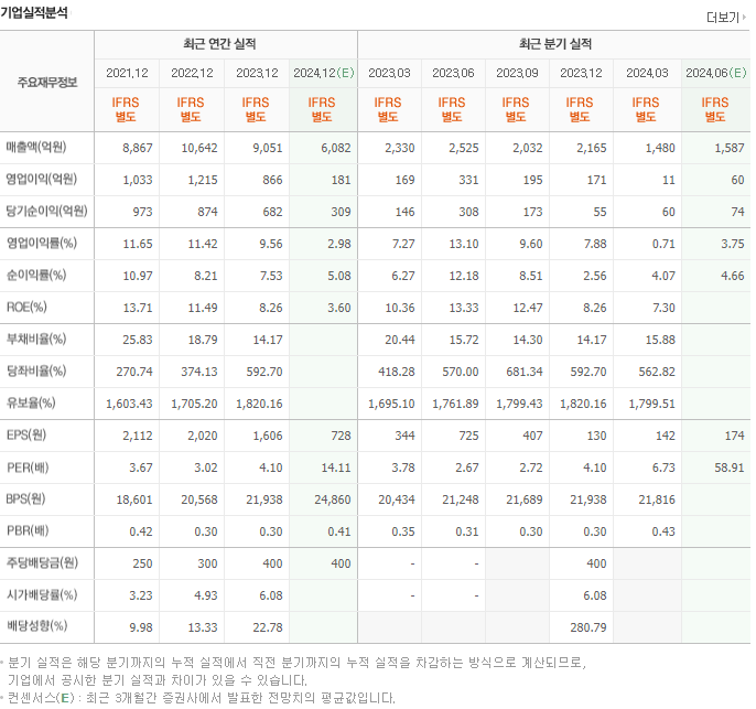 또한, 주당순자산비율(PBR)은 1.2배로, 자산 대비 적정 가치에 거래되고 있음을 나타냅니다.