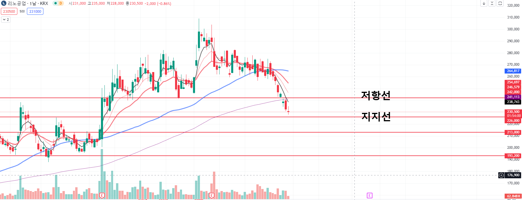 리노공업의 현재 주가는 여전히 저평가된 것으로 보이며, 향후 주가 상승 여력이 충분합니다.