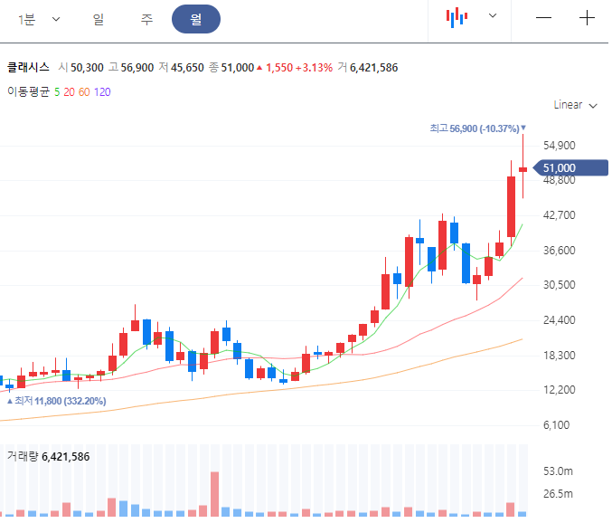 최근 주가는 50,600원으로 최고가 대비 하락세를 보이고 있습니다.